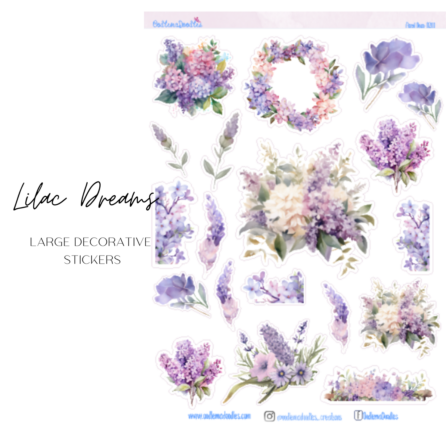 Lilac Dreams Flower Large Decorative Planner Stickers